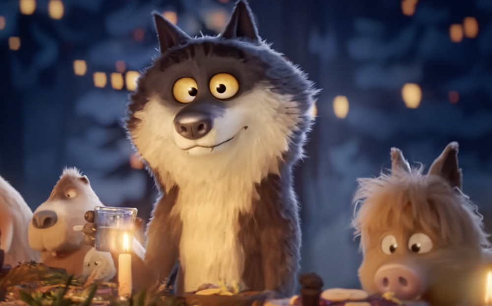 灯光亮起,全员融化。下一幕,大家围着桌子开吃,小狼举杯,差点就说出了圣诞动画史上最温柔的祝酒:“谢谢你们接纳我。”