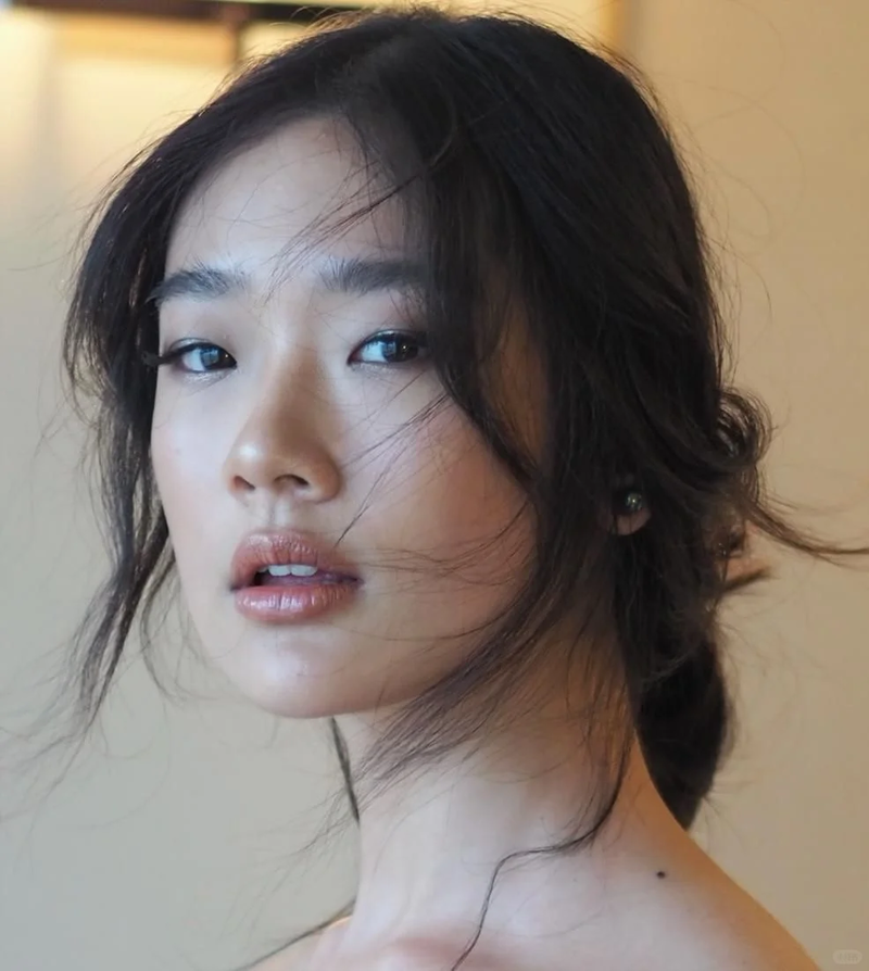 和泰国娱乐圈主流的浓颜系审美不同,茱蒂蒙不但是典型的淡颜长相,还有着宽眼距、高颧骨和方下颌。
