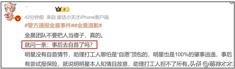 难道是金晨早就知道了通报的时间,所以提前写好了回应内容?代言受影响,上热搜的时候不发,就等通报?