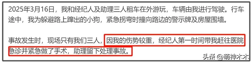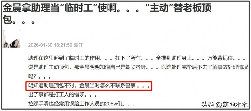 只能说,金晨的回应看似把自己摘得很干净,一个受伤较重就避开了逃逸顶包,但网友并不买账。况且从通报来看,事故三人都是“轻微受伤”,到金晨这就得进医院手术了。金晨手术了,经纪人呢?也没精力处理事故问题,放助理自己随意处置?
