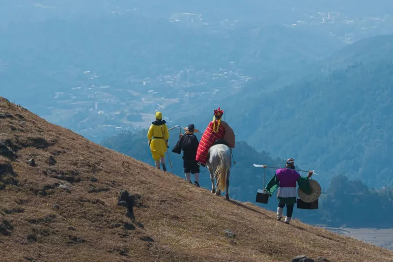 师徒四人都是平政农村人,平均年龄34岁,对大山熟悉,对1986年版杨洁导演的电视剧《西游记》更熟悉。一行人按照电视剧里的顺序一字排开,徒步数公里,穿过崇山峻岭,一支行走几十秒的镜头,在社交平台上动辄数万点赞。