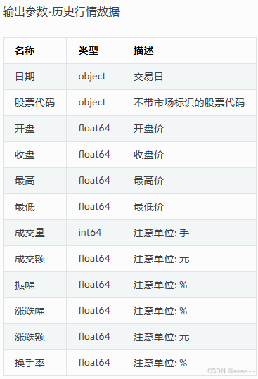在AKshare 数据字典中展示了我们可以获取的各种金融数据。