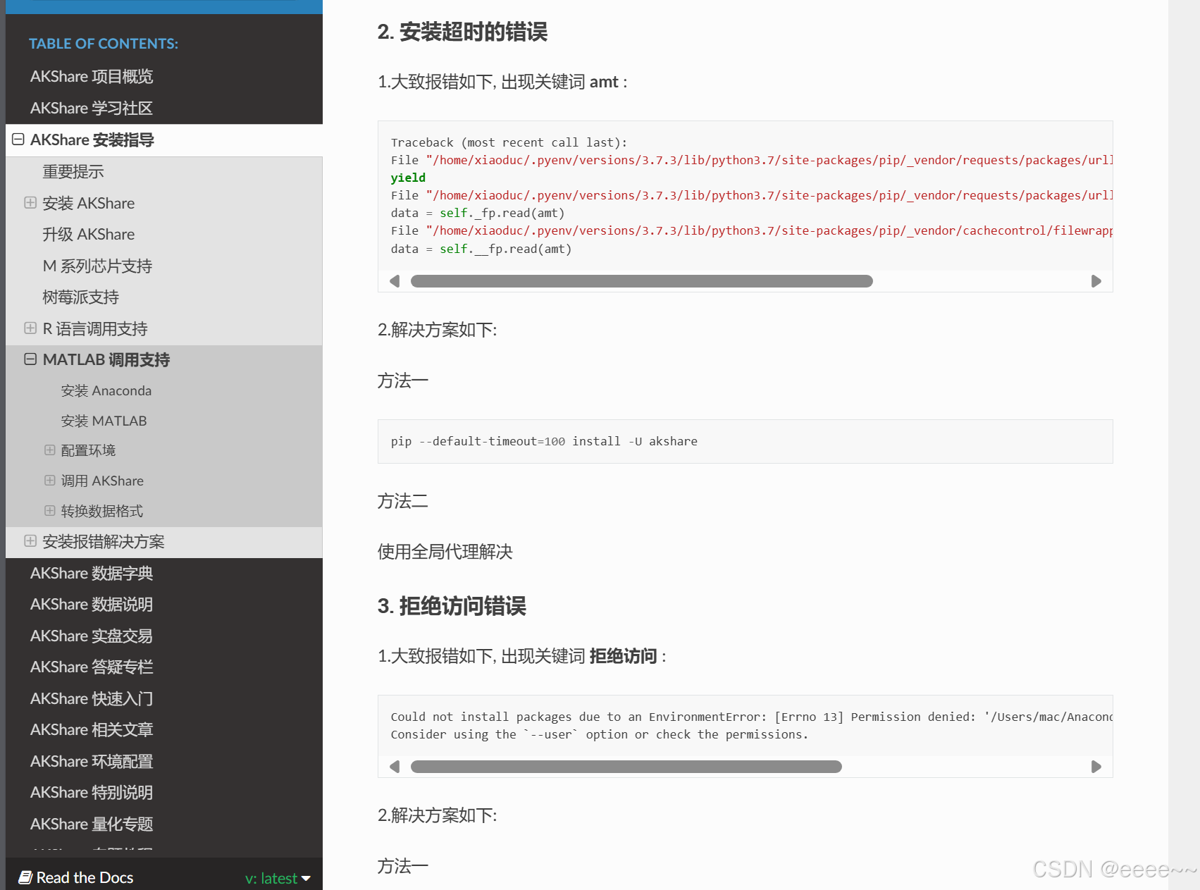 接下来我将主要介绍一下官方文档的阅读顺序:AKShare 股票数据 — AKShare 1.14.61 文档 (akfamily.xyz)