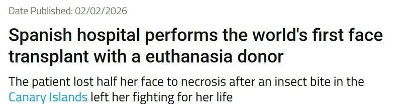 最近,西班牙巴塞罗那的瓦尔德赫布伦大学医院(Vall d’Hebron University Hospital)公布了一项创举——他们完成了世界首例利用安乐死捐赠者的脸进行的换脸手术,如今受捐者康复良好。