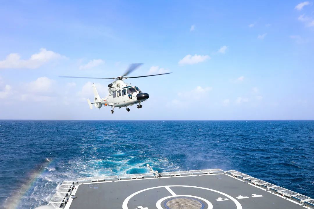 霎时间,急促的警报声响彻云霄。口令声、脚步声不绝于耳,官兵们火速赶往战位,迅速进入战斗状态。舱面上,舰载直升机紧急升空前出查证,特战队员全副武装严阵以待,岳阳舰迅即转向加速,一场反恐反海盗演练随即展开。
