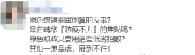 对于台“调查局”这番说辞,一些岛内网友并不买账,有网友质疑,“绿色媒体网军侧翼的反串?是在转移(民进党当局)‘防疫不力’的焦点吗?绿色执政只会用这些低劣招数?其他一无是处,废到不行!”↓