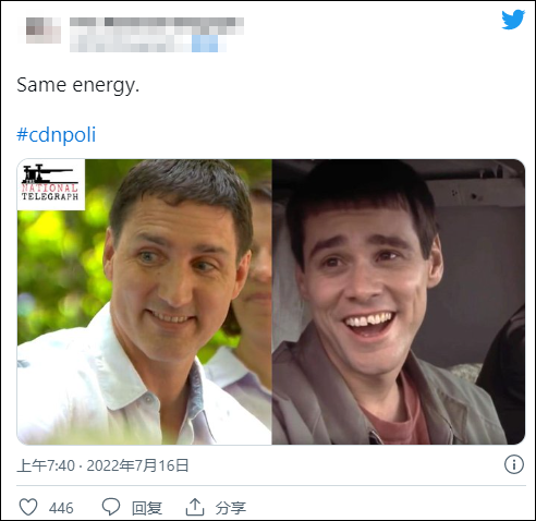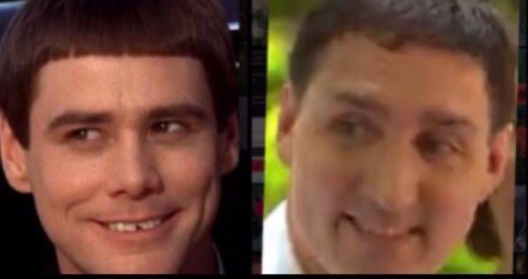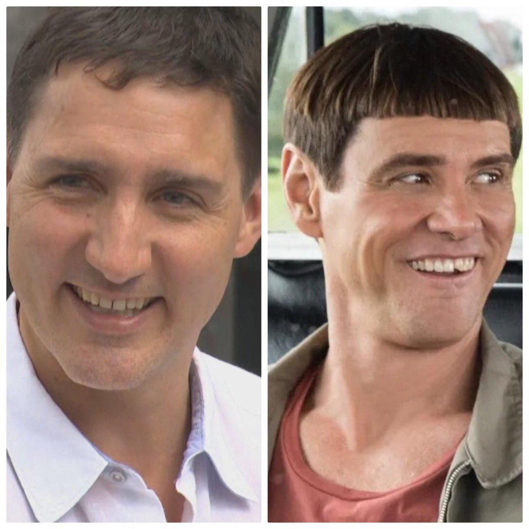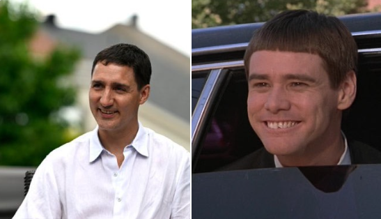 也有众多网民发现,特鲁多剪了这个新发型后,神似美国喜剧电影《阿呆与阿瓜》中,金·凯瑞饰演的“呆瓜”形象。