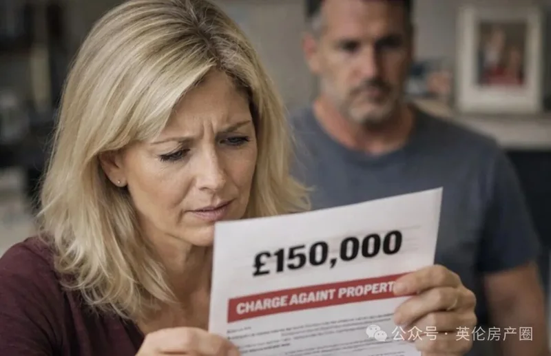 如果按35万英镑房价计算,扣掉这两笔,房屋净值大约只剩7万英镑左右,真正能分的其实就这一小块蛋糕。