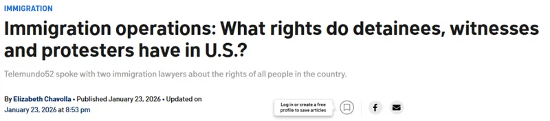 电视台Telemundo 52采访了两名移民律师,解读境内人士在不同场景下可行使的权利。