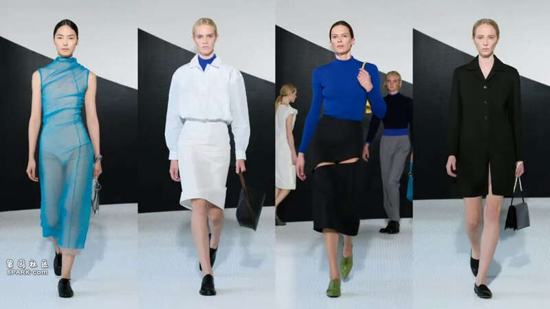 与前任时代相比,Simone笔下的色彩更为大胆跳脱:他将艺术家Yves Klein标志性的“IKB 电光蓝”融入设计,让这一强烈色调与品牌经典的深炭灰、米白、驼色等中性色碰撞,为服饰注入全新活力与现代感。系列最吸睛的莫过于“镂空”元素,裙装上若隐若现的镂空与切割,既是克制的性感表达,更是对艺术家Lucio Fontana切割系列作品的致敬,巧妙将艺术与极简服装融合。现场,观众以两次掌声向他的Jil Sander致意。