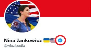 尼娜·扬科维奇拥有推特蓝色认证标识(红圈处)