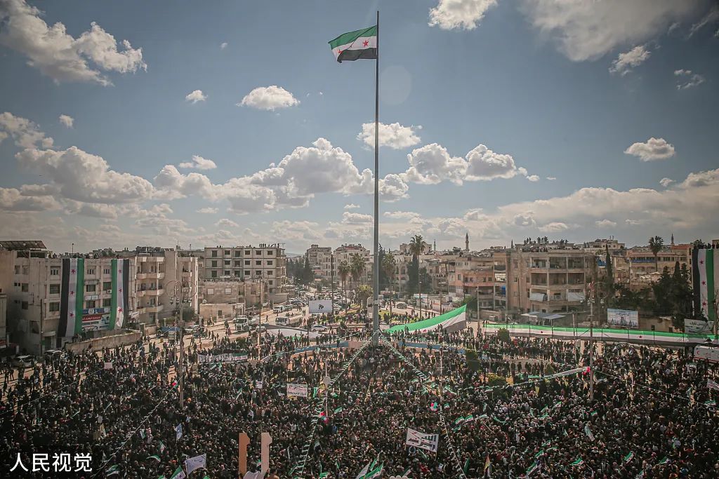 当地时间2022年3月15日,叙利亚伊德利卜,叙利亚危机爆发11周年,超过5000人参加集会。