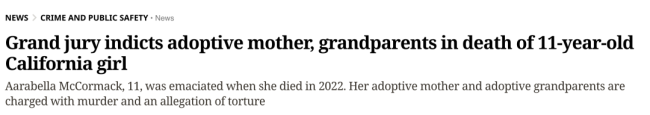 2022年8月,11岁的阿拉贝拉·麦考马克(Arabella McCormack)在美国加利福尼亚州圣地亚哥县的养父母家中死亡。
