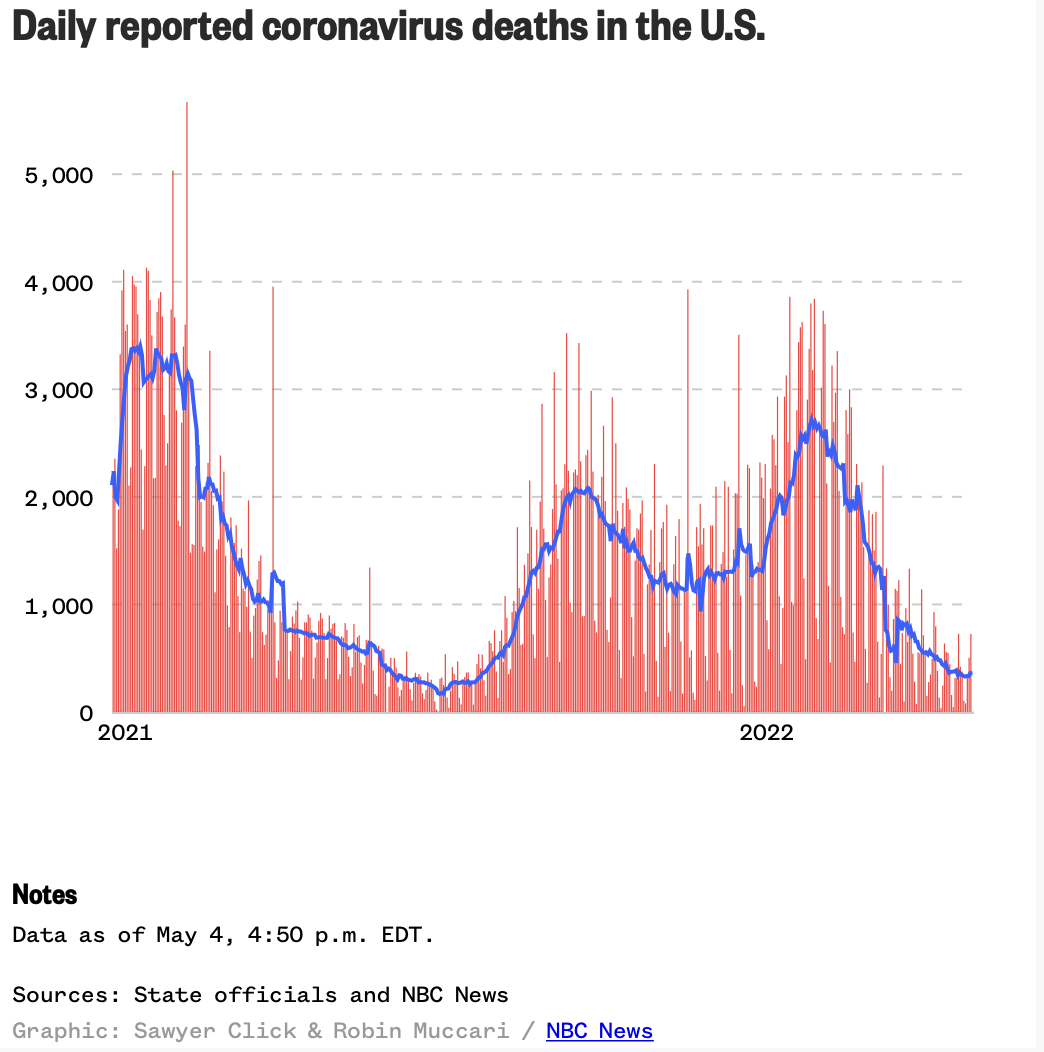 尽管最近几周因新冠肺炎导致的死亡人数有所放缓,但每天仍有约360个美国人因新冠肺炎死去,这远远高于大流行初期时人们的预期。