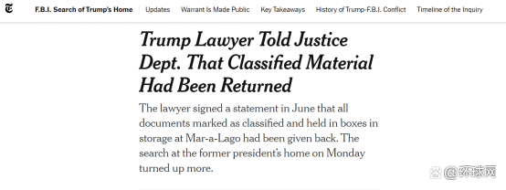 《纽约时报》:特朗普律师告诉司法部,机密材料已被归还