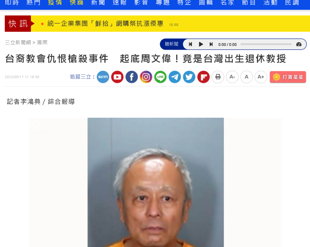 就连台湾的三立新闻网和“中央社”也在大量事实面前不得不承认枪手其实是台湾人。其中,台湾“中央社”还称周文伟是被美国警方误当成大陆背景了,发生这一错误的原因是他那个时代出生的台湾人可能会在填写身份信息时将自己的出生地写为“中国”。