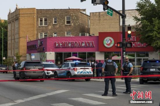 资料图:当地时间2022年8月24日,美国芝加哥西北区一所高中附近发生枪击事件,四名人受伤,其中一人伤势严重。 图为芝加哥警方封锁了案发现场。 图片来源:视觉中国