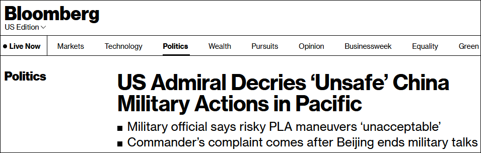 彭博社也指出,托马斯这名海军将领发出这番言论之际,美国众议院议长佩洛西本月早些时候刚刚窜访台湾,解放军已在台海周边组织了军事演训予以严正回应,并将常态组织战备警巡。作为反制美方的一部分,中方还祭出“三个取消五个暂停”一共8项对美反制措施,其中“三个取消”涉及中美两军层面,这类措施是为降低两个核大国之间升级冲突和发生误判的风险。