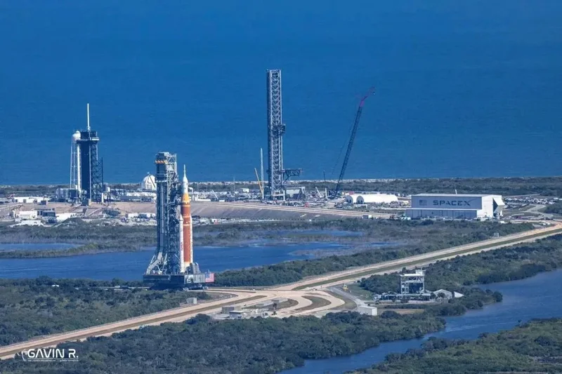 1月17日,SLS火箭+猎户座飞船由技术区转场至39B发射台,进入发射前准备阶段。