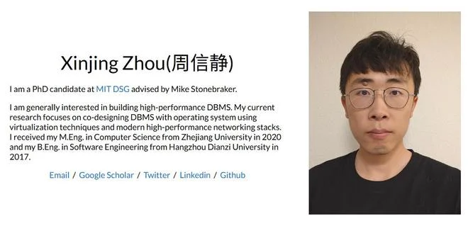 据其母校温州市龙湾区职业技术学校提供的资料,周信静是龙湾区职业技术学校2012届计算机职专班毕业生。在龙职就读的三年,他经历了从懵懂迷茫到幡然醒悟的巨大人生转折,逐渐摸索出适合自身的学习方法并付诸行动。浙江经贸职业技术学院毕业时,周信静通过专升本考试顺利进入杭州电子科技大学学习,之后凭借自己的努力成功考入浙江大学就读研究生。研究生期间以第一作者身份发表DPTree的工作在数据库顶级会议VLDB2020会议上。毕业后,周信静顺利就职于腾讯公司,工作之余,他从未放弃对自己热爱的数据库领域的研究,他参与的工作SpitFire发在SIGMOD2021上(SIGMOD和VLDB是数据库领域最顶级的两个会议),2020年底成功申请到麻省理工学院(MIT)的计算机博士(CSPhD),成为了数据库领域图灵奖获得者Mike Stonebraker的学生。