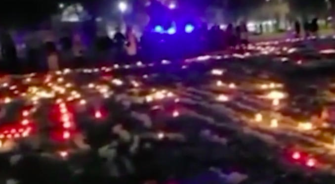 10日早上,这些鲜花被市政用铲车清理掉。10日当天,数百名民众再次聚集在纪念碑广场前,重新摆放鲜花。视频显示,民众持续献花点蜡烛直至深夜,还高唱《喀秋莎》。