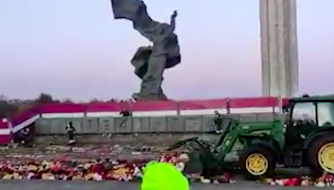 海外网5月11日电 综合拉脱维亚通讯社、俄罗斯卫星通讯社10日报道,5月9日胜利日前夕,在拉脱维亚首都里加,民众自发前往解放者纪念碑献花。但这些鲜花随后被铲车铲走,几个小时后,民众再度将鲜花摆满广场。