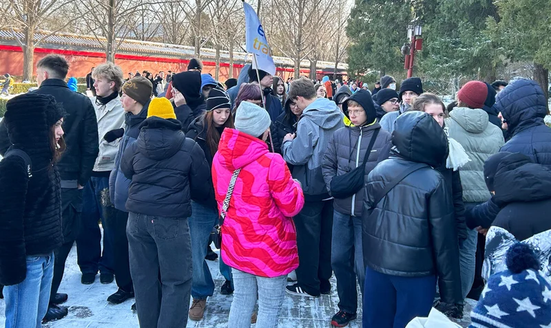 该旅行团一名16岁的游客告诉观察者网,他目前是一名中学生,此次是跟随父母报的旅行团前来中国旅行,今天游览完景山公园和北京市内一些景点,明天有可能去长城,因为今天下大雪了,所以没能去登长城。”