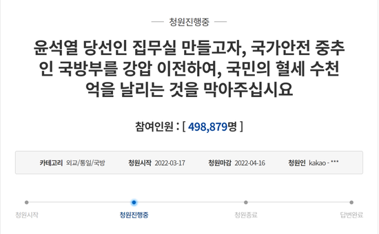 17日,韩国民众在青瓦台官网发起请愿,阻止“为开设当选总统尹锡悦的办公室,而强制转移国家安全中枢国防部”。请愿书称,尹锡悦总统任期最多5年,却要用数千亿韩元税收打造自己的办公室,这笔钱本该投入经济、民生和防疫领域。