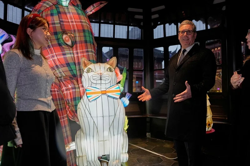 斯塔默还去了湖心亭茶楼,这是一座建在湖中木桩上的亭阁。在那里,他会见了设计并制作了灯笼的学生们。斯塔默向学生们讲起了内阁办公室的首席捕鼠官——拉里猫,并补充说这位唐宁街的住户很受来访的各国领导人欢迎。