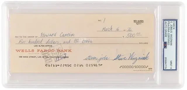 IT之家 1 月 31 日消息,科技媒体 Cult of Mac 昨日(1 月 30 日)发布博文,报道称在 1 月 29 日举办的 RR Auction 拍卖会上,由史蒂夫 · 乔布斯(Steve Jobs)和史蒂夫 · 沃兹尼亚克(Steve Wozniak)共同签署的“苹果 1 号支票”以 2409886 美元(IT之家注:现汇率约合 1675.5 万元人民币)的天价成交,创下公开拍卖支票的最高纪录。
