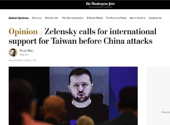 此次,他在《华盛顿邮报》这篇关于泽连斯基的文章里又“故伎重施”,为了挑拨中国和乌克兰的关系,竟编造出了泽连斯基“呼吁国际社会支持台湾”这么一番后者并没有说出的话,还称泽连斯基表示“国际社会应该立刻帮助台湾抵御中国的攻势”。
