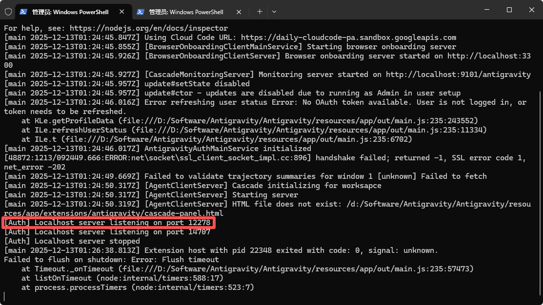 [Auth] Localhost server listening on port 12278关键点: 这里的