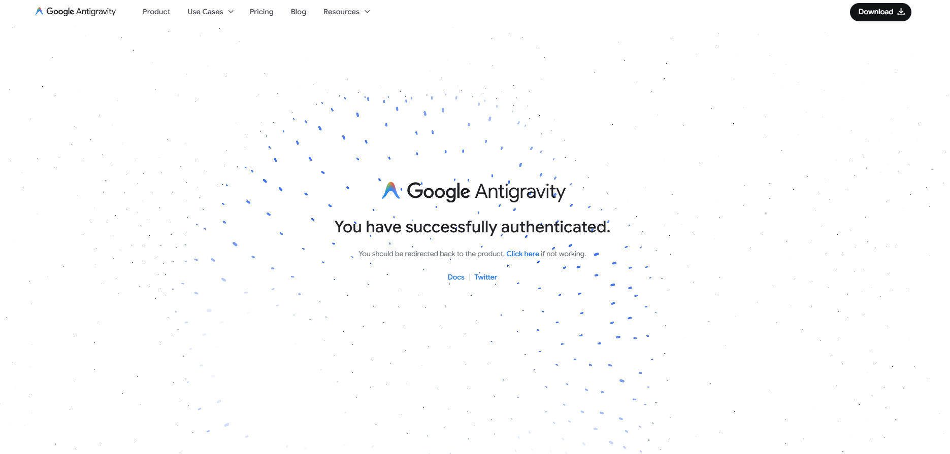 故障现象:浏览器登录成功后,并没有自动唤起 Antigravity 软件,软件界面一直卡在 "Waiting for login..." 或转圈状态,无法进入主界面。