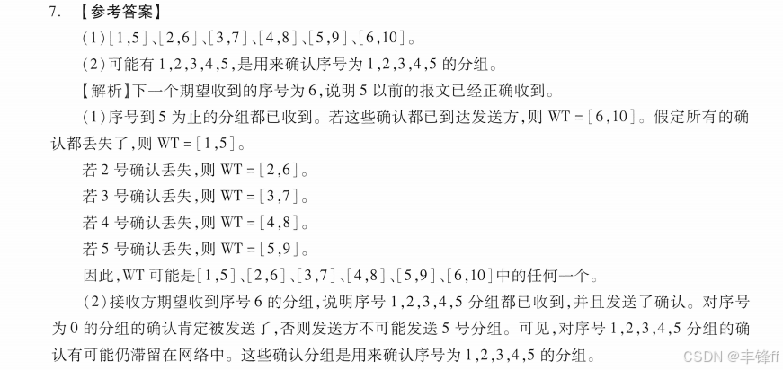 7.假定使用连续 ARQ 协议,发送窗口大小为 5,帧序号范围是[0,15],而传输媒体保证在接收方能够按序收到分组。在某时刻,接收方下一个期望收到的序号是 6。试问: