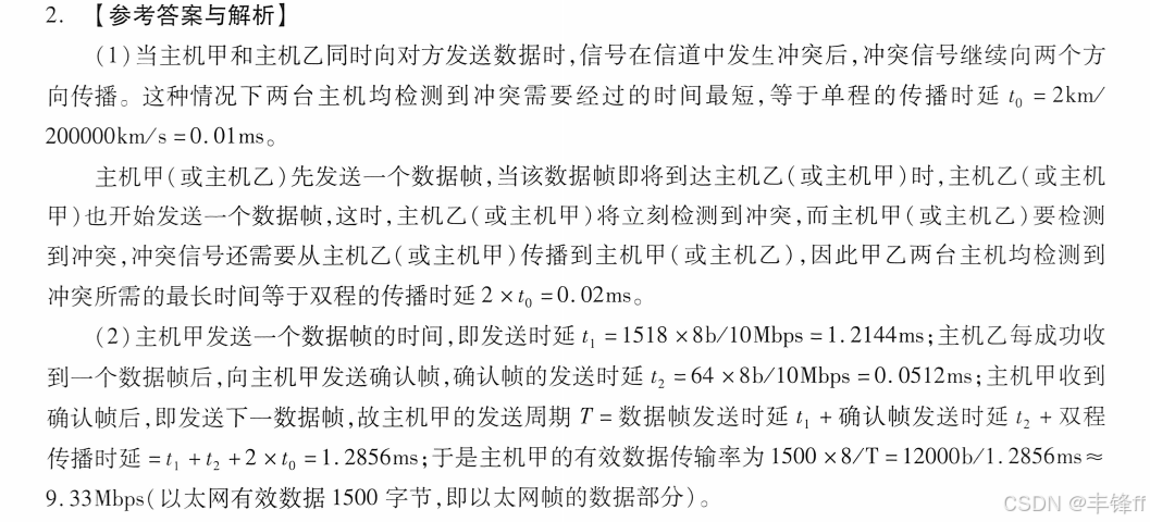 2.某局域网采用 CSMA/CD 协议实现介质访问控制,数据传输率为 10Mb/s,主机甲和主机乙之间的距离是 2km,信号传播速率是 200000km/s。请回答下列问题,要求说明理由或写出计算过程。 【全国统考 2010 年】