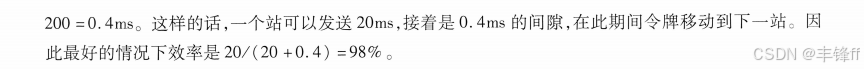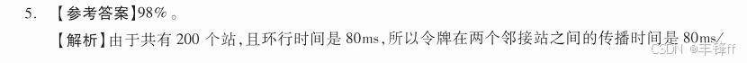 5.现设一个大的 FDDI 环有 200 个站,令牌环行时间是 80ms,令牌保持时间是 20ms。该环可取得的最大效率是多少?