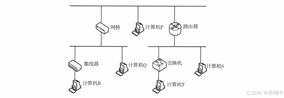 【解析】主机 00 - e1 - d5 - 00 - 23 - a1 向 00 - e1 - d5 - 00 - 23 - c1 发送数据帧时,交换机转发表中没有 00 - e1 - d5 - 00 - 23 - c1 这项,所以向除 1 接口外的所有接口广播这帧,即 2、3 端口会转发这帧,同时因为转发表中并没有 00 - e1 - d5 - 00 - 23 - a1 这项,所以转发表会把(目的地址 00 - e1 - d5 - 00 - 23 - a1,端口 1)这项加入转发表。而当 00 - e1 - d5 - 00 - 23 - c1 向 00 - e1 - d5 - 00 - 23 - a1 发送确认帧时,由于转发表已经有 00 - e1 - d5 - 00 - 23 - a1 这项,所以交换机只向 1 端口转发,选 B。4.下图所示的网络冲突域和广播域的个数分别是 ( )。 【全国统考 2020 年】