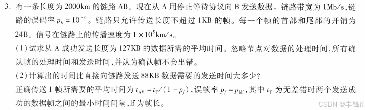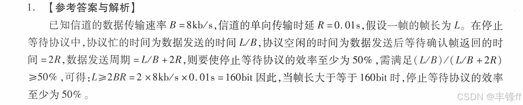 1.信道速率为 8kb/s,采用停止 - 等待协议,传播时延为 10ms。确认帧长度和处理时间可忽略。问帧长多少才能使信道利用率达到至少 50%?