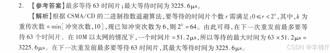 2.一个以太网卡经历 6 次连续冲突后,在下一次重发前最多要等待多少时间片?在 10M 以太网中,其最大等待时间为多少?