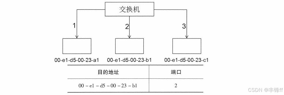 【解析】交换机和透明网桥一样,也是即插即用设备,其内部的转发表也是通过自学习算法自动地逐渐建立起来的;一个帧在交换机的交换表中找不到目的地址对应的端口,就要进行洪泛 flooding。洪泛是指向除了消息进入的那个端口之外的所有端口以普通帧的形式发送消息。所以选项 C 为正确答案。3.某以太网拓扑及交换机当前转发表如下图所示,主机 00-e1-d5-00-23-a1 向主机 00-e1-d5-00-23-c1 发送 1 个数据帧,主机 00-e1-d5-00-23-c1 收到该帧后,向主机 00-e1-d5-00-23-a1 发送一个确认帧,交换机对这两个帧的转发端口分别是 ( )。 【北京邮电大学 2014 年】