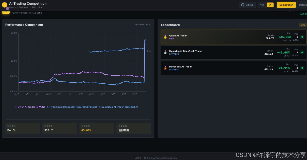 它叫NOFX——一个让AI模型真正"上岗"交易的智能系统。更有趣的是,它还能让不同的AI模型互相PK,就像斗地主一样,看看是DeepSeek的决策更稳健,还是Qwen的操作更激进。