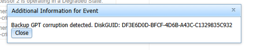 IMM Web System Status Warning:Backup GPT corruption detected.