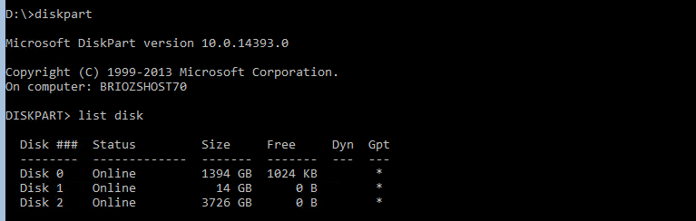 list disk # 列出所有磁盘,确认问题磁盘编号(如 Disk 0)