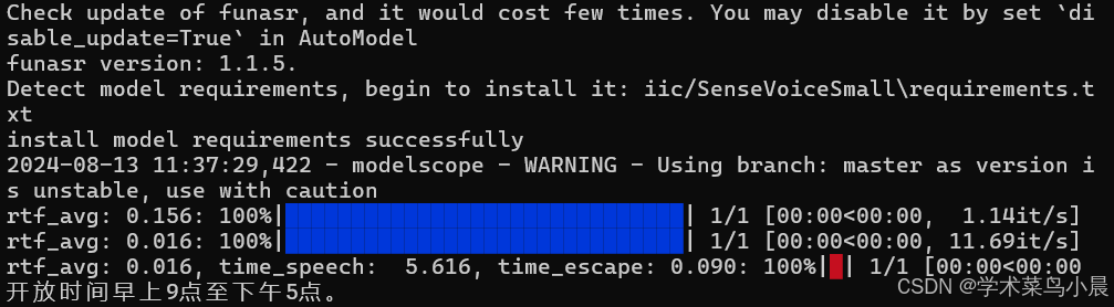 FunASR提供了在大规模工业语料库上训练的模型,并能够将其部署到应用程序中。工具包的核心模型是Paraformer,这是一个非自回归的端到端语音识别模型,经过手动注释的普通话语音识别数据集进行了训练,该数据集包含60,000小时的语音数据。为了提高Paraformer的性能,本文在标准的Paraformer基础上增加了时间戳预测和热词定制能力。此外,为了便于模型部署,本文还开源了基于前馈时序记忆网络FSMN-VAD的语音活动检测模型和基于可控时延Transformer(CT-Transformer)的文本后处理标点模型,这两个模型都是在工业语料库上训练的。这些功能模块为构建高精度的长音频语音识别服务提供了坚实的基础,与在公开数据集上训练的其它模型相比,Paraformer展现出了更卓越的性能。 FunASR 的中文语音转写效果比 Whisper 更优秀。