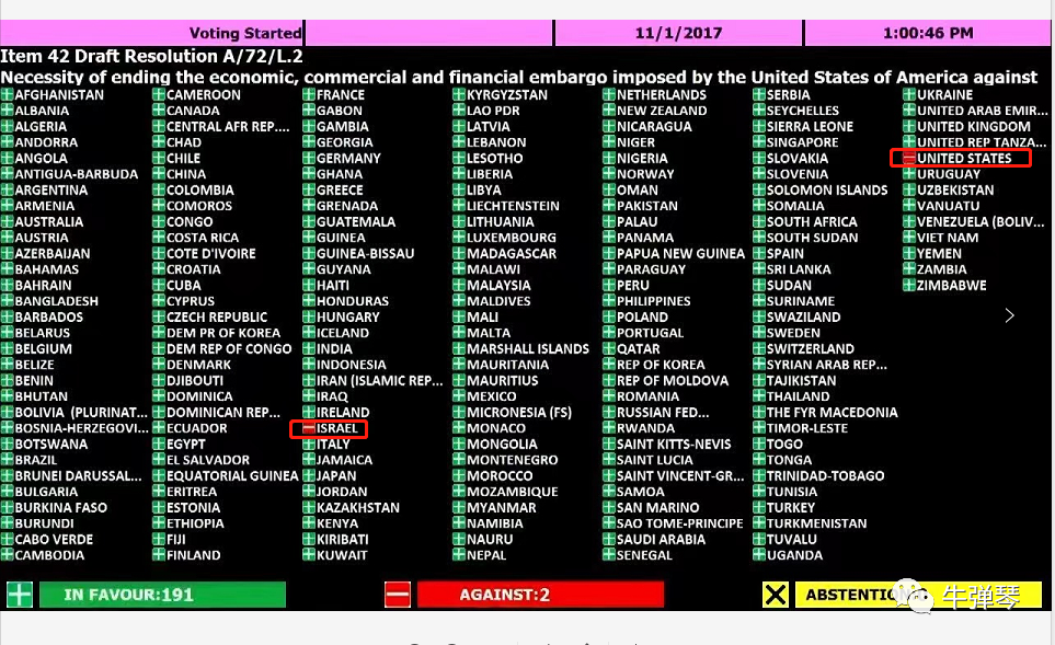 很多上次弃权的,这次更是反对票,中国是这样,阿尔及利亚、玻利维亚、古巴、伊朗等很多国家,都是这样。