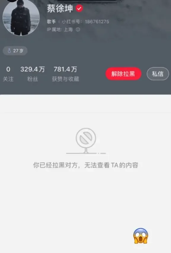 1月28日,金子涵在社交平台晒出拉黑蔡徐坤账号的截图,并用英文写道:“Can one give kindness to others in the same way?”该行为迅速引发网友热议,但金子涵并未进一步说明具体原因。