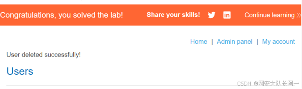 9、 转到管理员面板,并删除 carlos 以解决实验室问题。