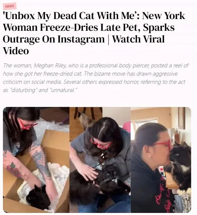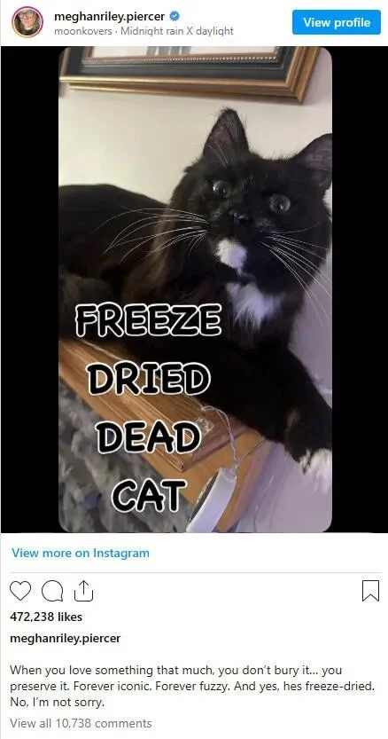 在2025年,就有一位叫Meghan Riley的女生将爱猫做成了标本。