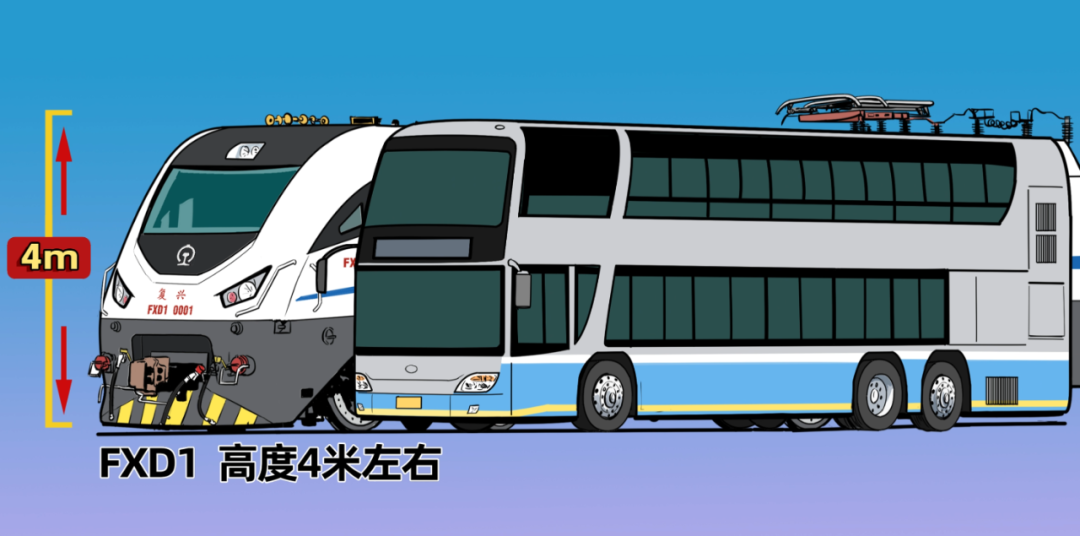 火车是陆地上最高大的交通工具,一台电力机车的高度在4 米左右,相当于一辆双层公交车的高度。