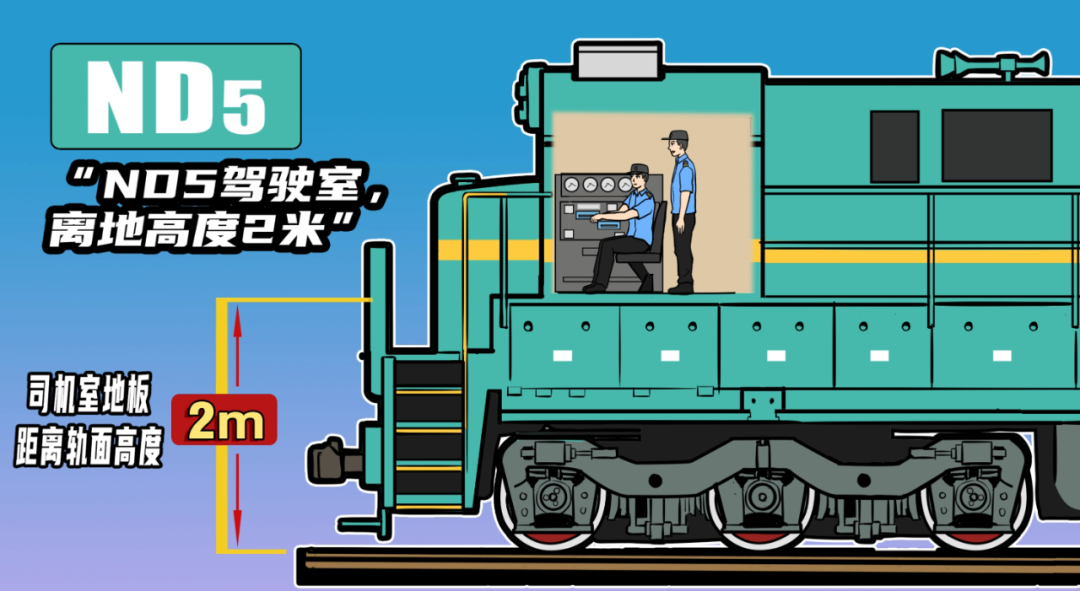 就明显表述出了火车驾驶室位置很高。